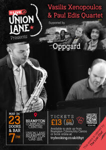 Vasilis Xenopoulos & Paul Edis Quartet with support from emerging artists Oppgard under the Jazz North’s New Northern programme.