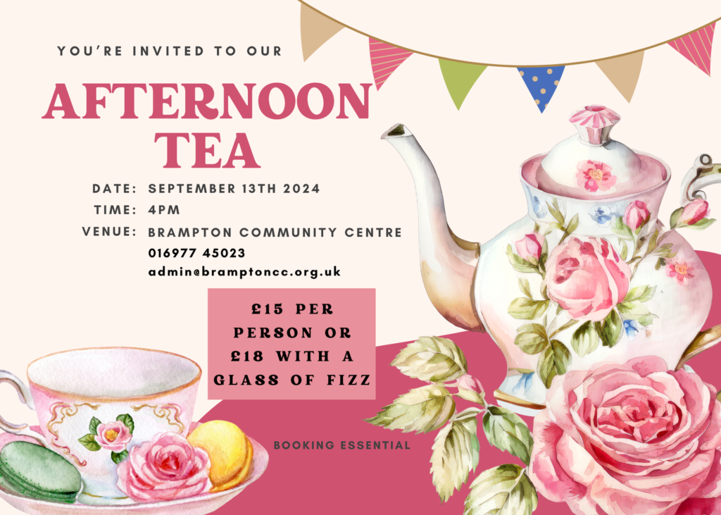 A lovely Afternoon tea to take place on the 13th September at 4pm. Booking is essential Please telephone or email the centre to book you place. £15 per head or…