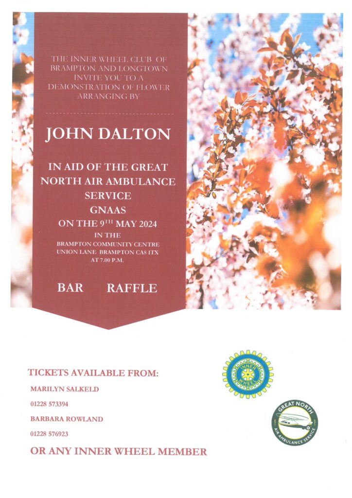 The Inner Wheel Club of Brampton and Longtown invite you to a Flower Arranging demonstration by the legendary John Dalton. John has achieved over 6 awards at the world renowned…